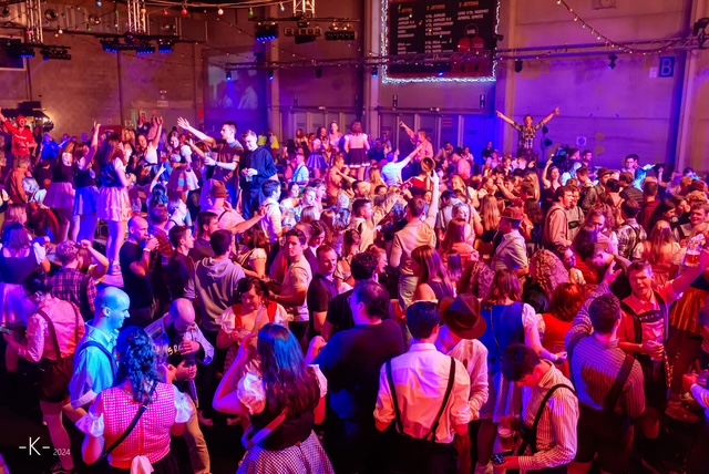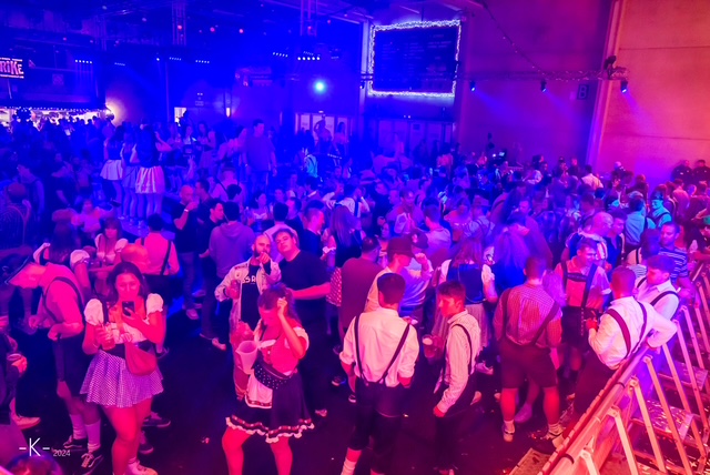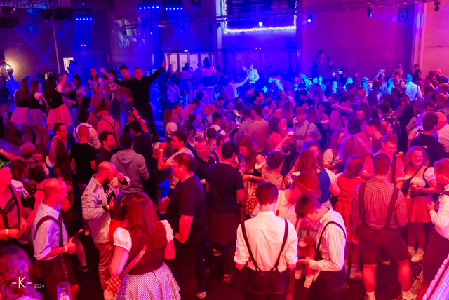 Zaal in Tiroolse Aprés-Ski sfeer, Dresscode Tirol mag maar is geen verplichting.